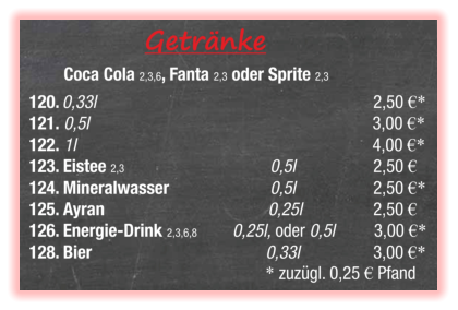 ALLE GETRÄNKE IN DER ÜBERSICHT
