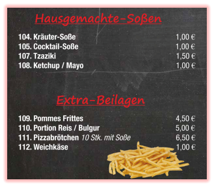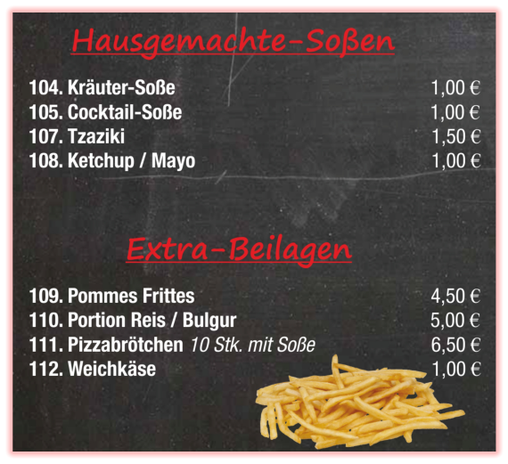 ALLE EXTRA BEILAGEN & SOSSEN IN DER ÜBERSICHT